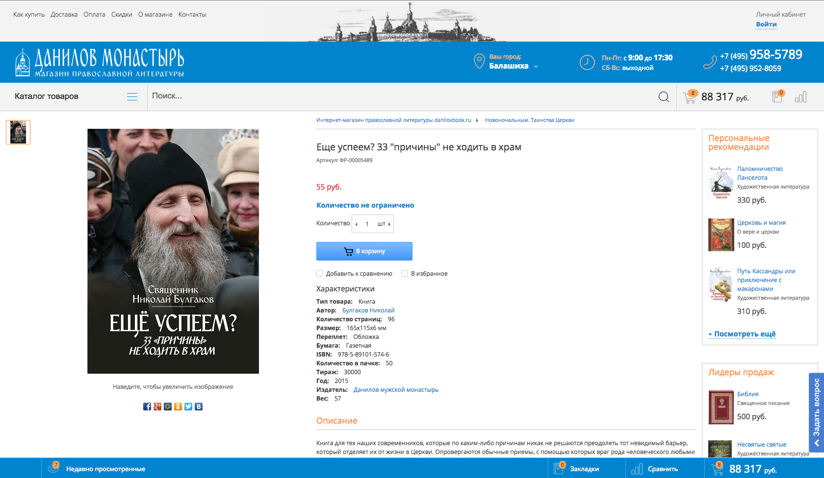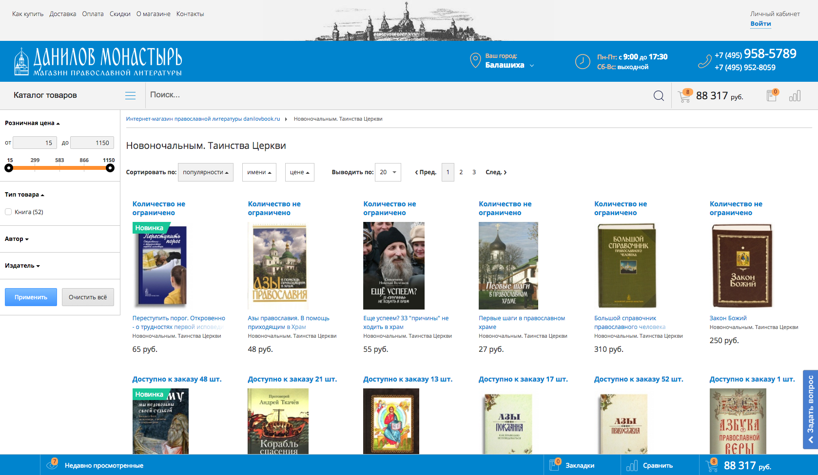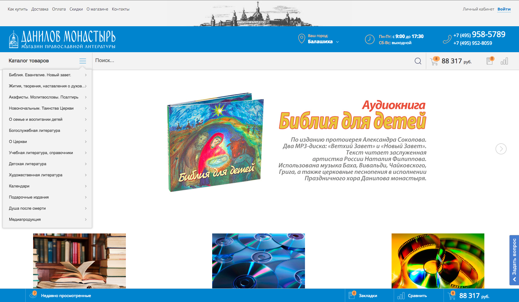 Благодарим за проведенную работу. Сайт изменился до неузнаваемости, появилась корректная синхронизация с 1С и еще много нового и полезного бизнес функционала у сайта Издательства Данилова Монастыря